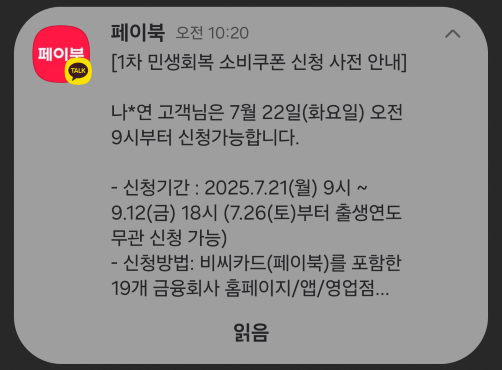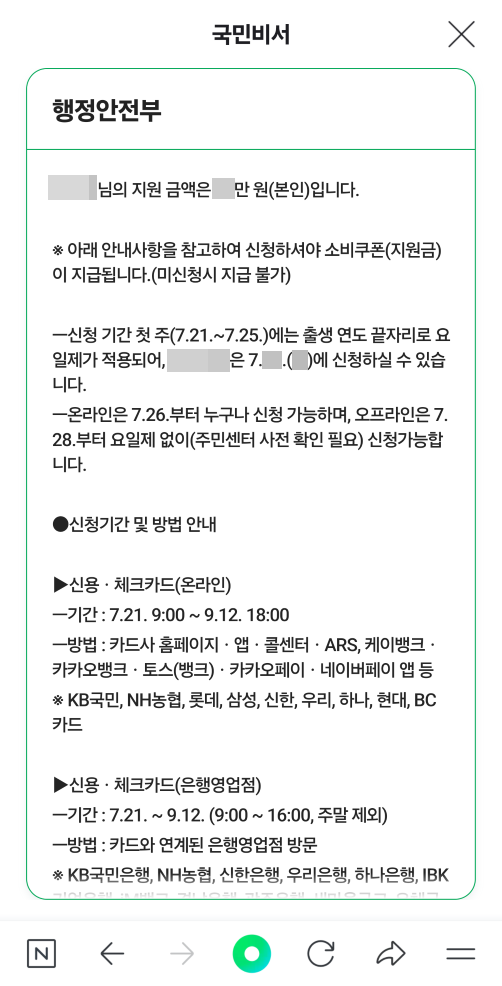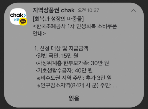 [민생회복 소비쿠폰] 1차 지원 금액 알림 - 국민비서 알림