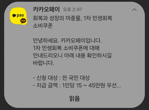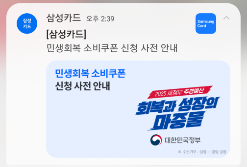 - "민생회복 소비쿠폰 안내" 알림 수신 설정하기