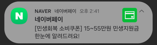 - 네이버 "민생회복 소비쿠폰 안내" 서비스 추가 알림 메시지