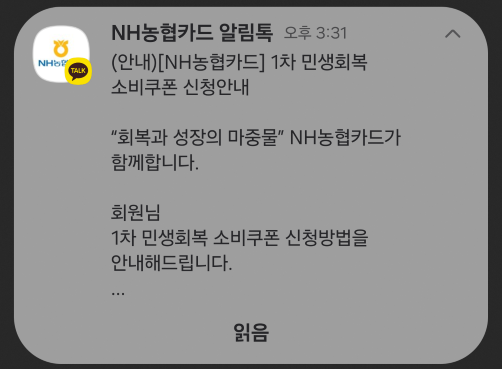 신청가능한 앱에서 관련 내용 안내 알림 메시지 발송하고 있습니다. [민생회복 소비쿠폰]