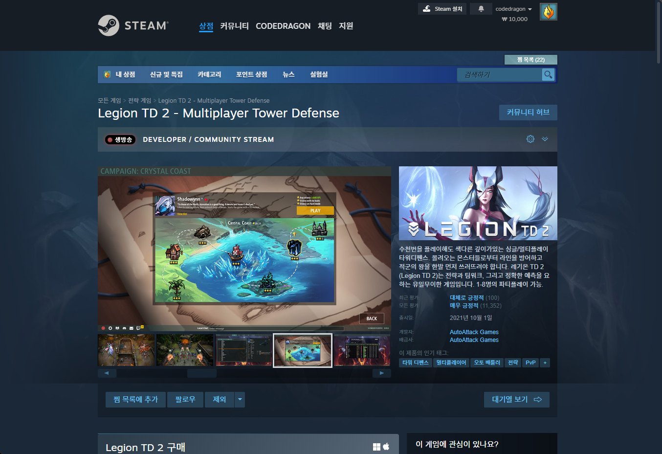 - "Legion TD 2 (레기온 TD 2)" 한시적 무료게임 구매하기