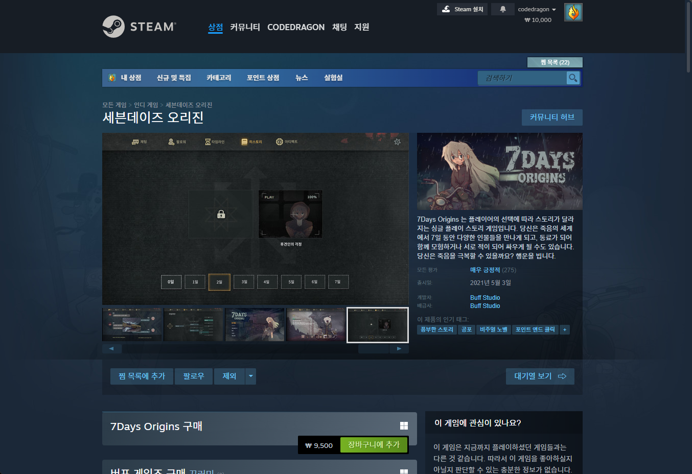 - "7Days Origins (세븐데이즈 오리진)" - Steam 스팀 게임 페이지