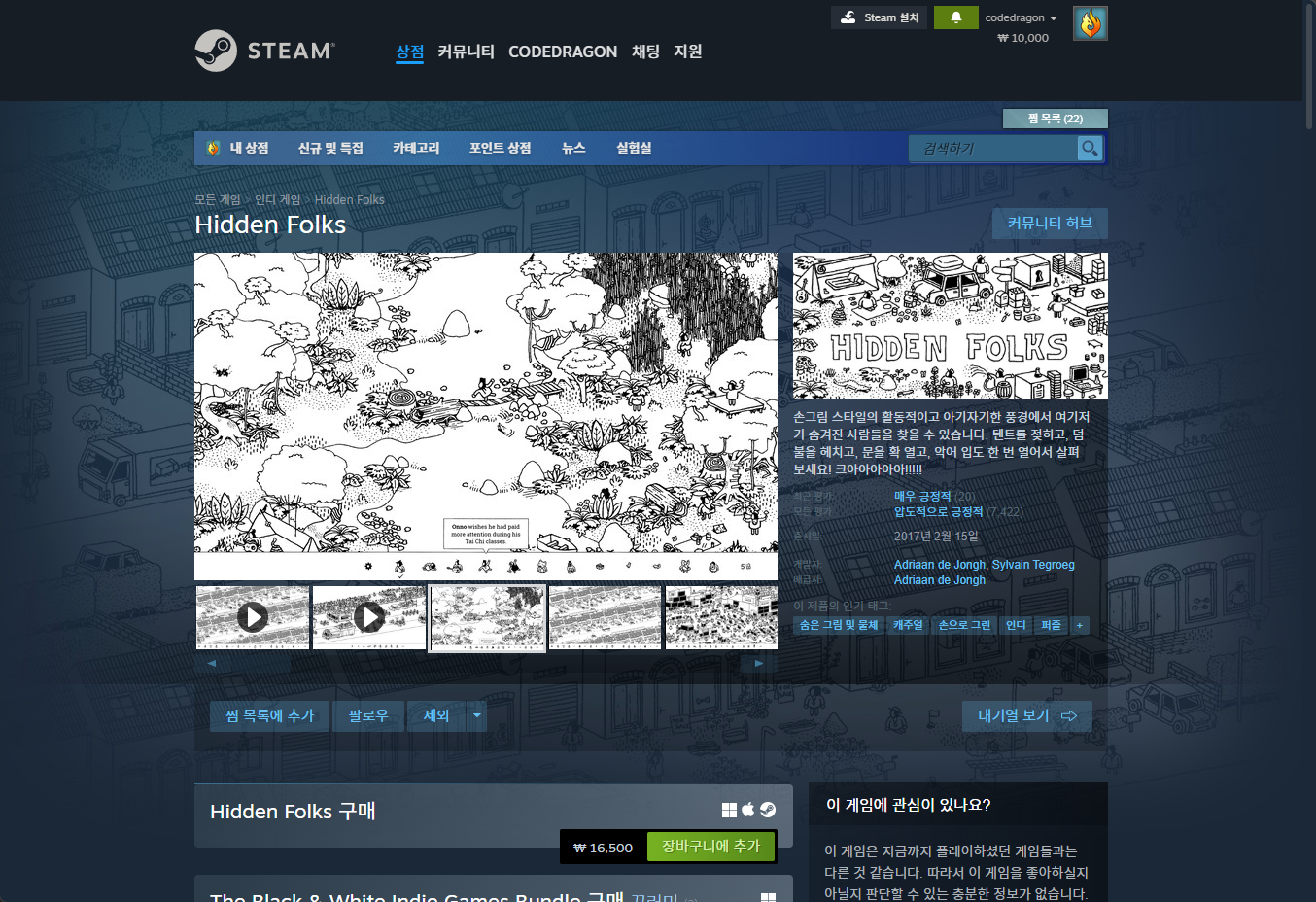 - "Hidden Folks (히든 포크스)" - Steam 스팀 게임 페이지