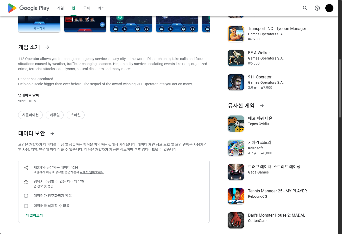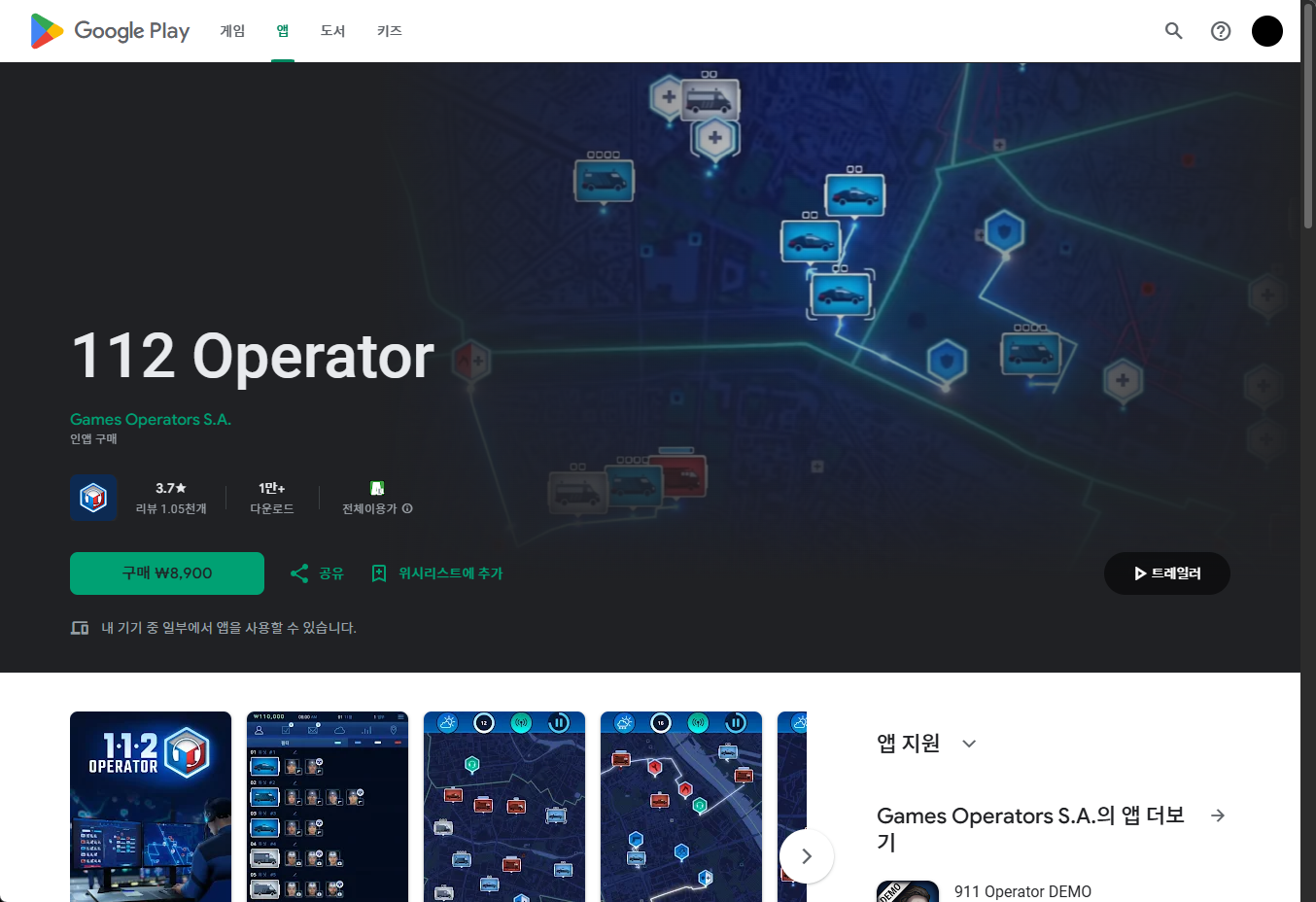 - "112 Operator (112 오퍼레이터)" - 구글 플레이 스토어 Google Play Store 게임 페이지