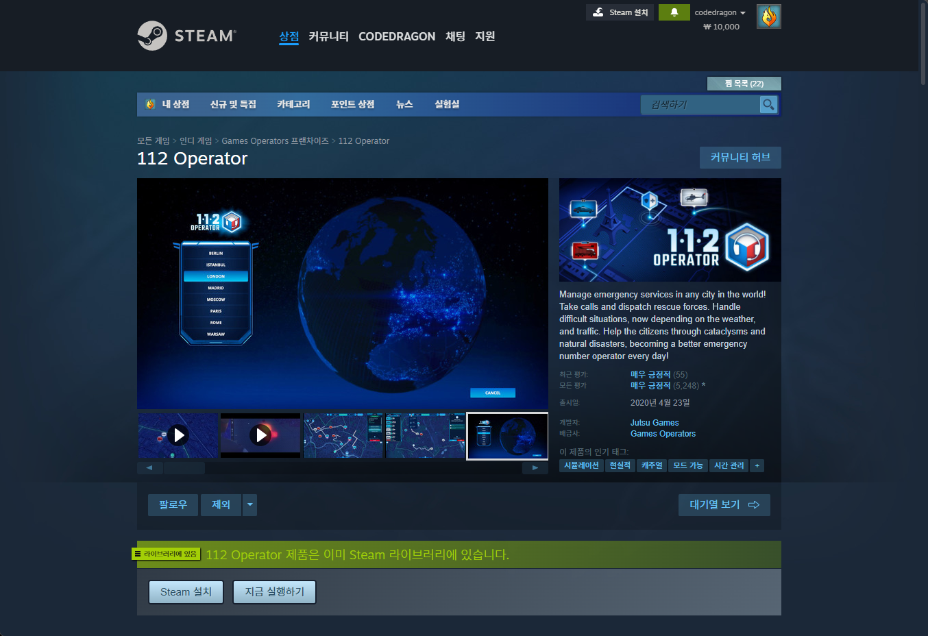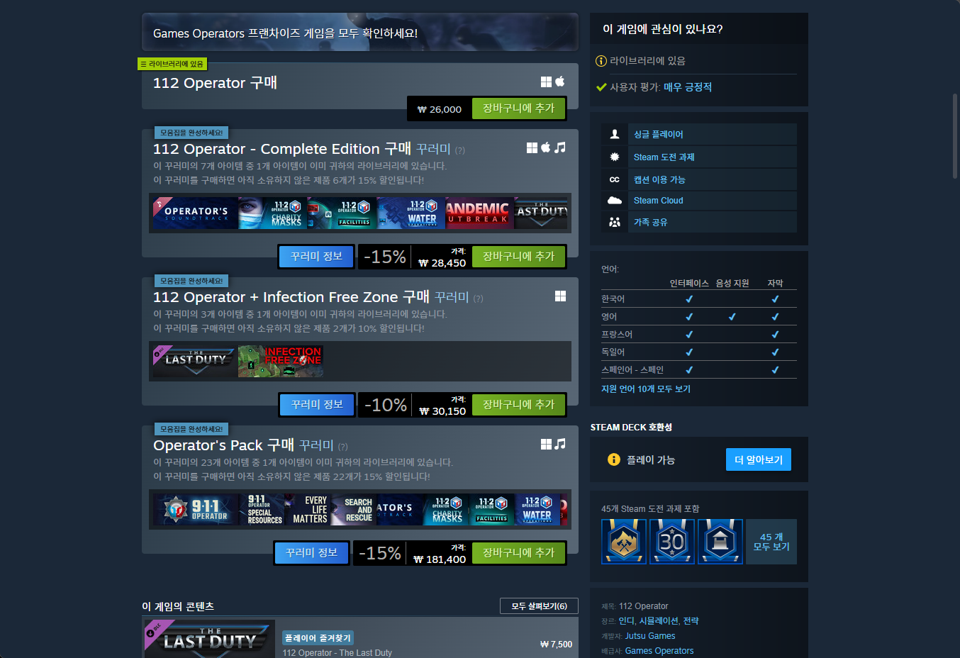 - "112 Operator (112 오퍼레이터)" - Steam 스팀 게임 페이지