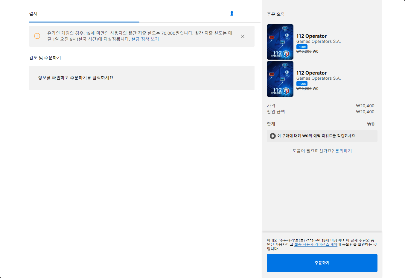 - "112 Operator (112 오퍼레이터)" 구매내역 확인하기 - 계정