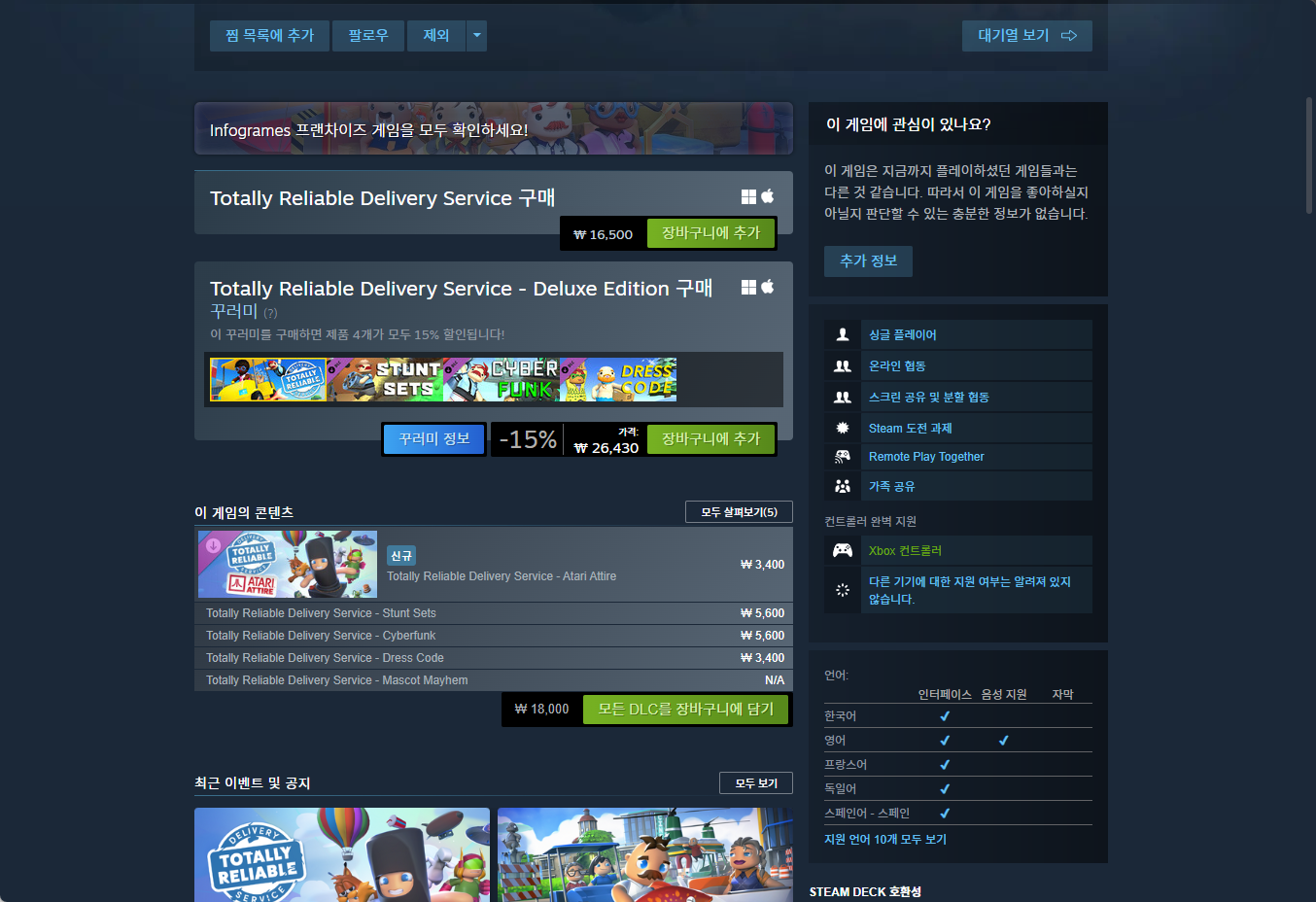- "Totally Reliable Delivery Service (토털리 릴라이어블 딜리버리 서비스)" 게임 보유 확인