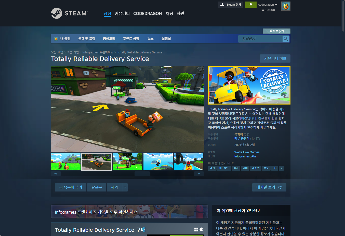 - "Totally Reliable Delivery Service (토털리 릴라이어블 딜리버리 서비스)" 한시적 무료게임 구매하기