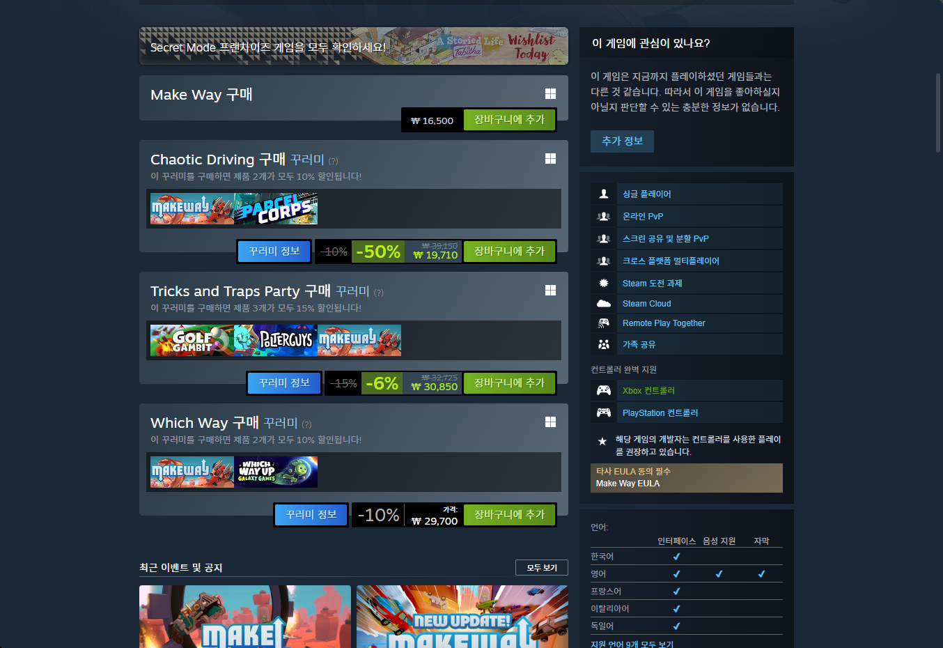 - "Make Way (메이크 웨이)" - Steam 스팀 게임 페이지