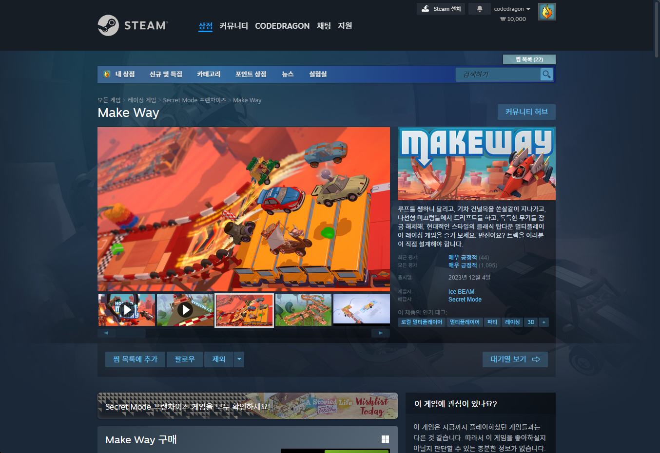 - "Make Way (메이크 웨이)" 한시적 무료게임 구매하기