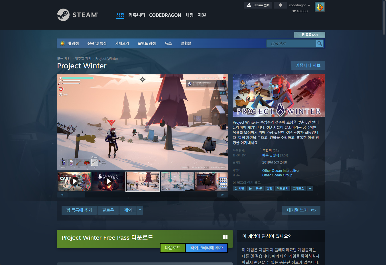 - "Project Winter (프로젝트 윈터)" 한시적 무료게임 구매하기