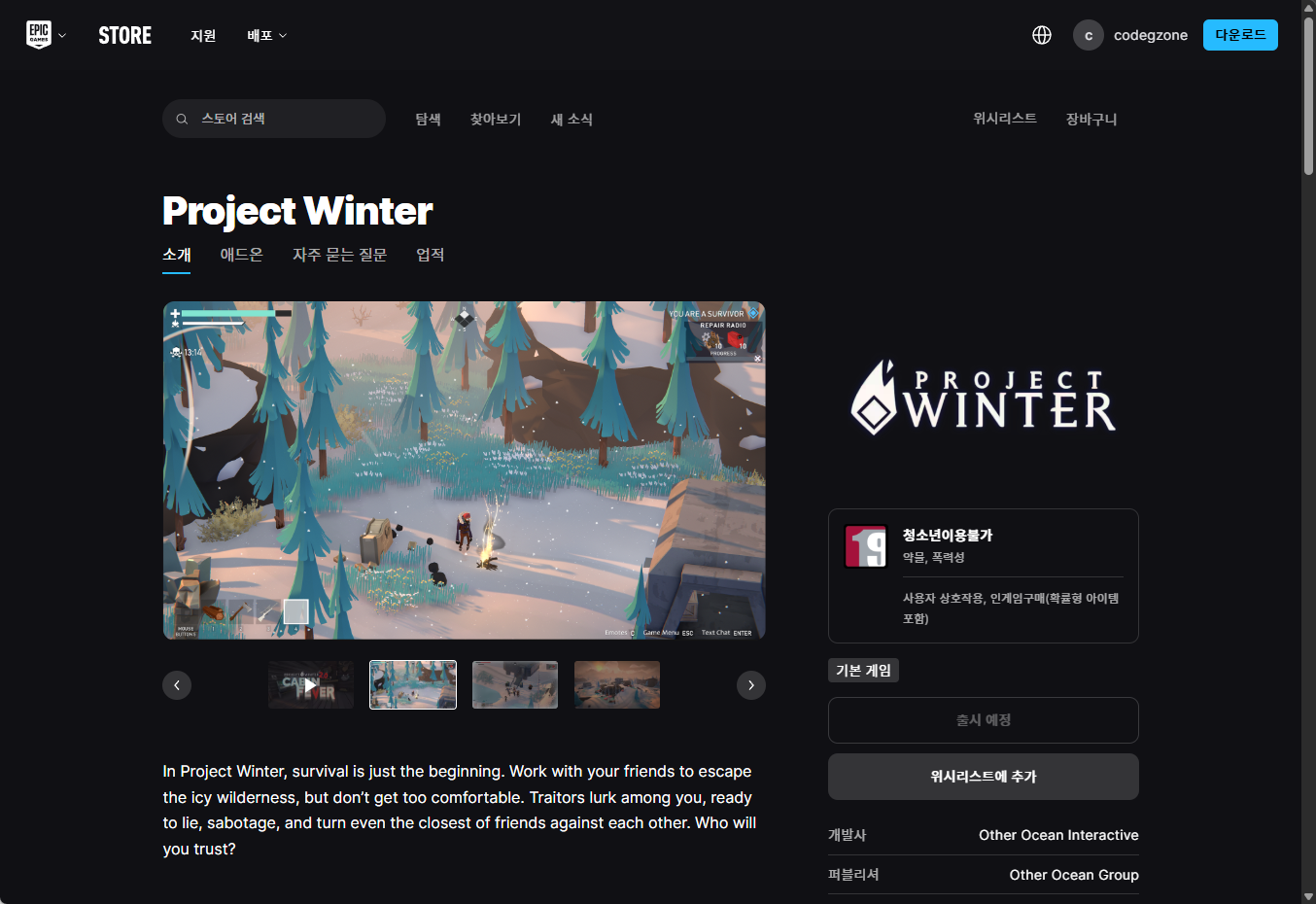 - "Project Winter (프로젝트 윈터)" 에픽 무료게임 페이지