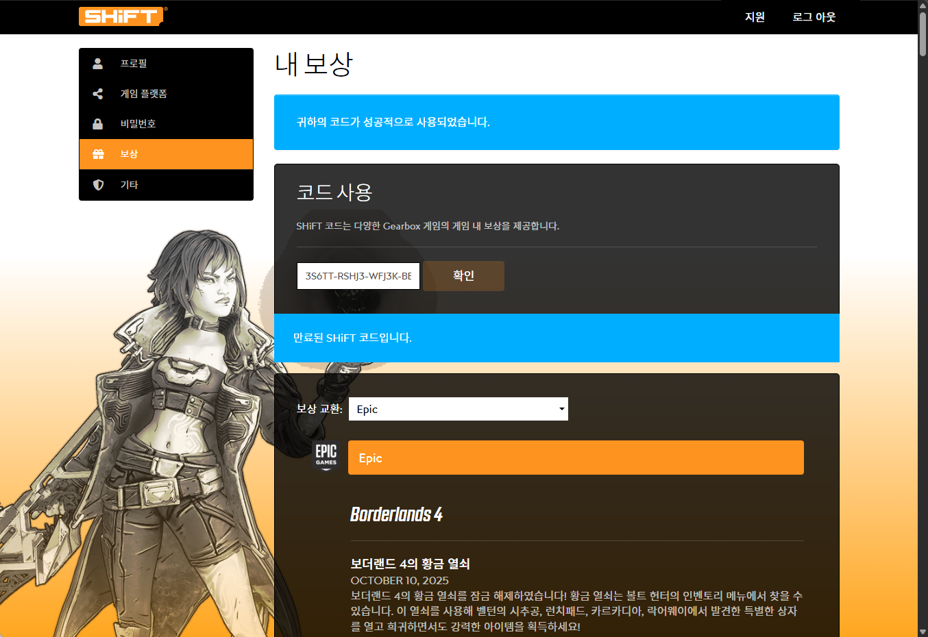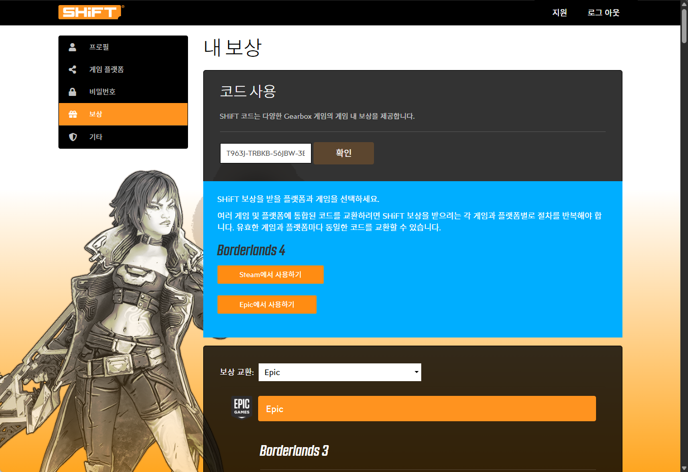Borderlands 3 보더랜드3 쉬프트 코드 SHiFT 코드 사용하기 사용방법 (무료 아이템 받기)