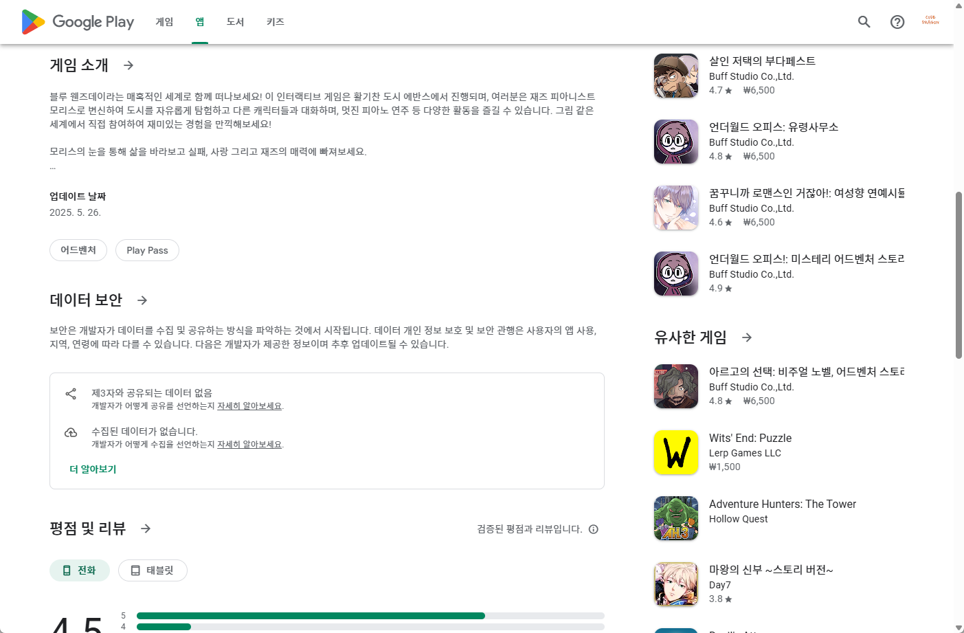https://play.google.com/store/apps/details?id=com.buffstudio.bluewednesday&hl=ko