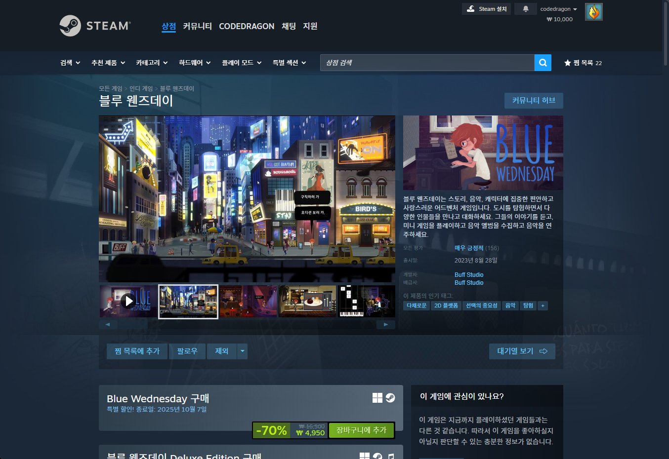 "Blue Wednesday (블루 웬즈데이)" - Steam 스팀 게임 페이지