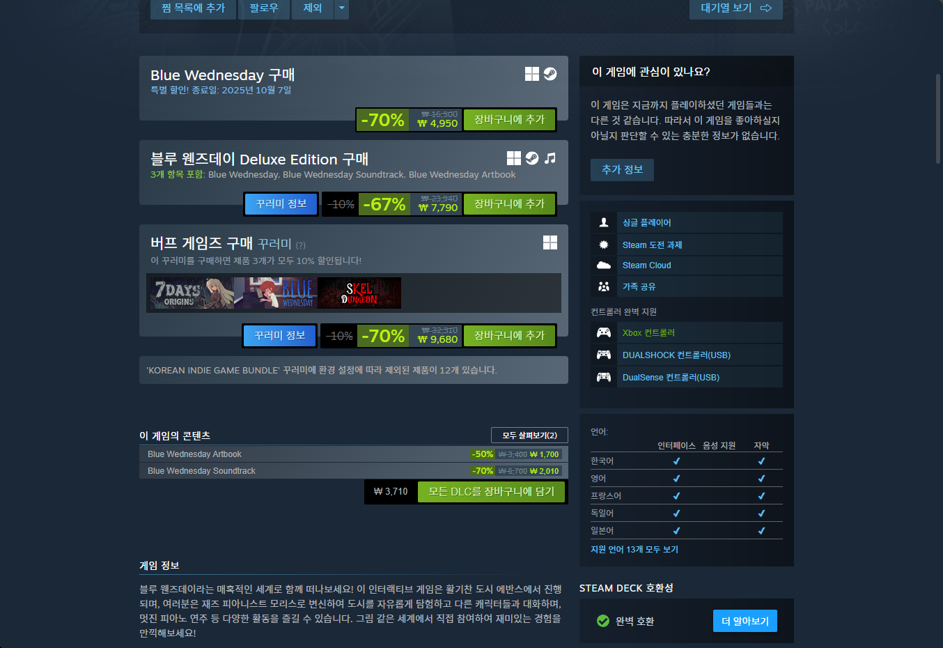 "Blue Wednesday (블루 웬즈데이)" - Steam 스팀 게임 페이지