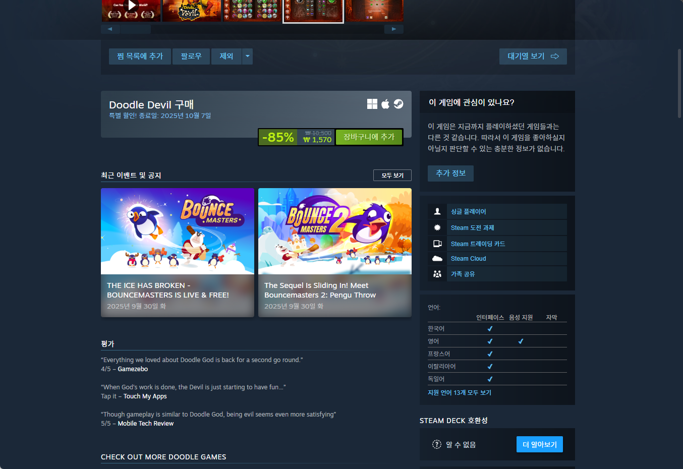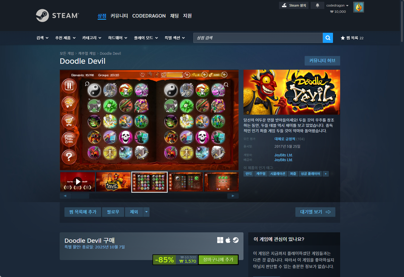 "Doodle Devil (두들 데블)" - Steam 스팀 게임 페이지