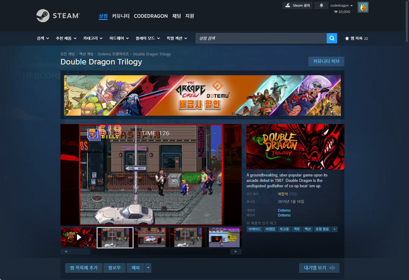 "Double Dragon Trilogy (더블 드래곤 트릴로지)" - Steam 스팀 게임 페이지