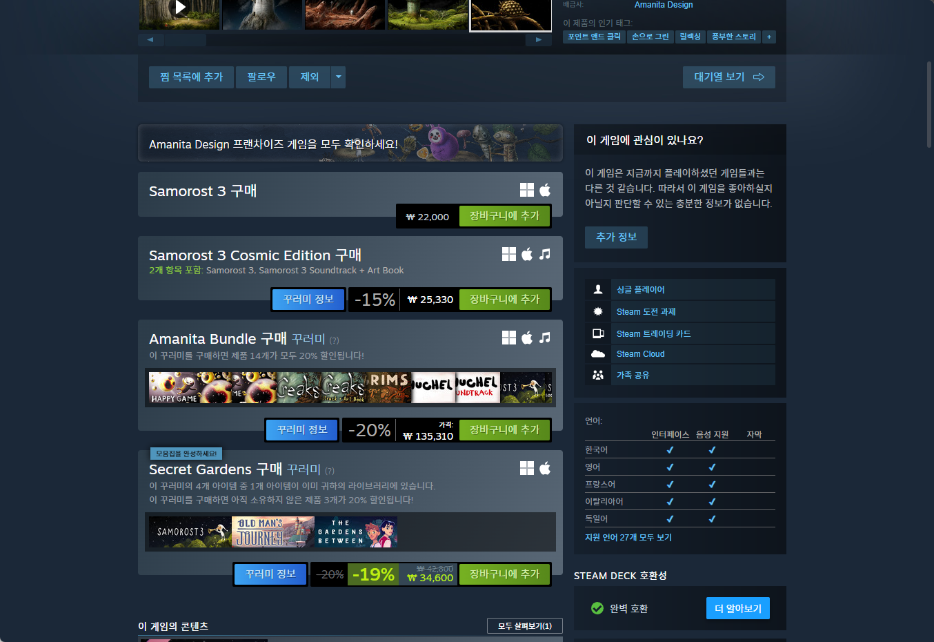 - "Samorost 3(사모로스트 3)" 게임 보유 확인