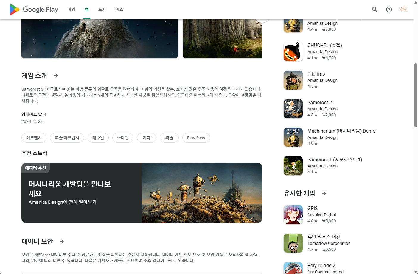 - "Samorost 3(사모로스트 3)" 모바일 게임 페이지