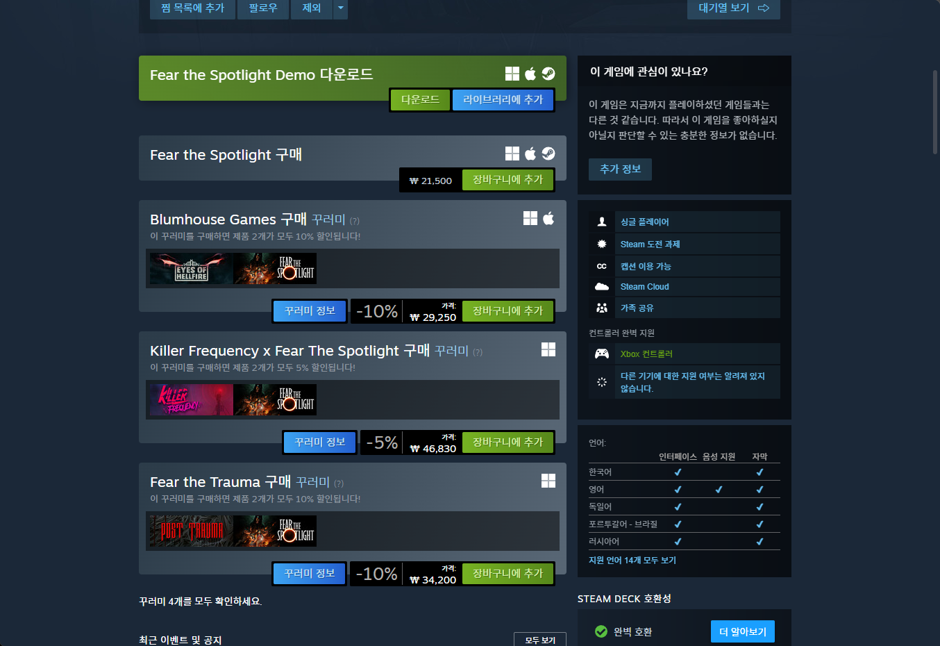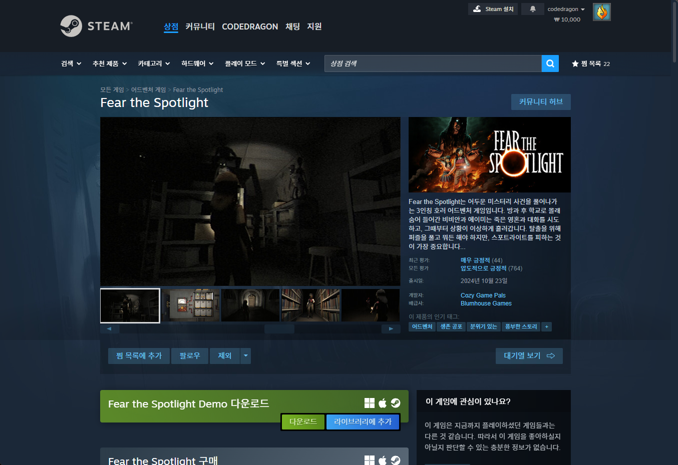 - "Fear the Spotlight (피어 더 스포트라이트)" 게임 보유 확인