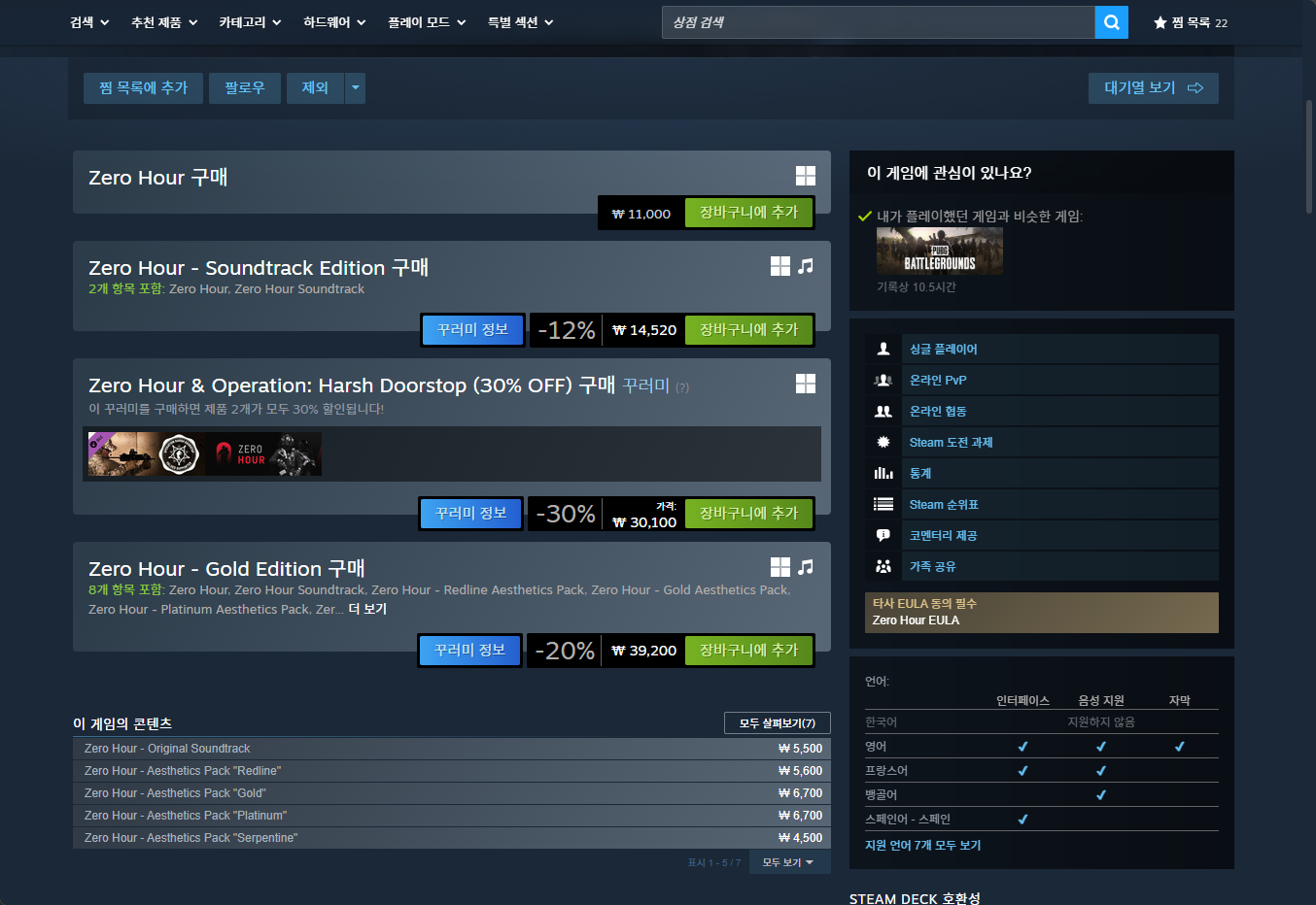 - "Zero Hour (제로 아워)" 게임 보유 확인