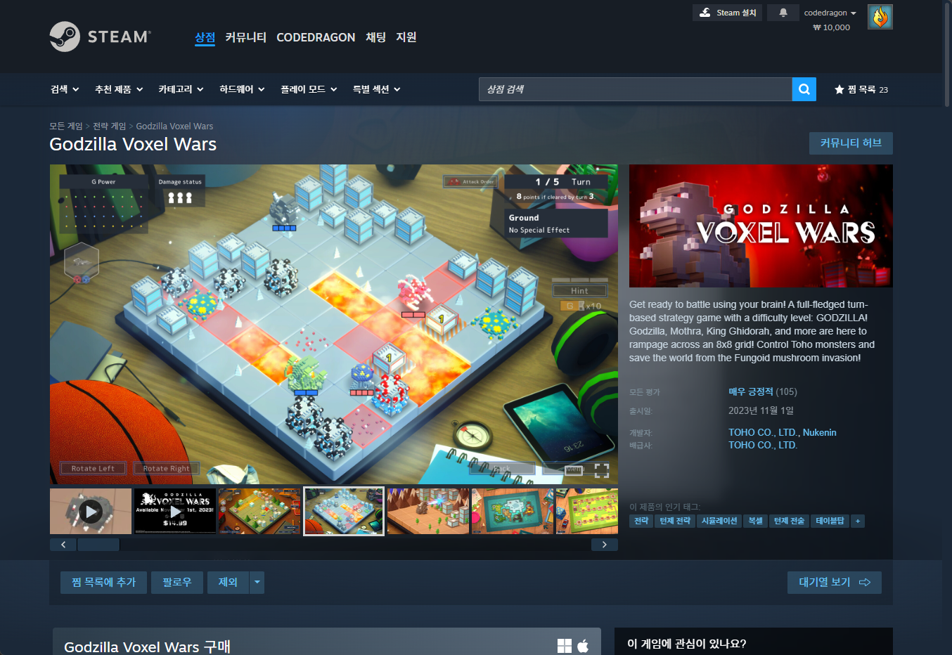 - "Godzilla Voxel Wars (고질라 복셀 워즈)" 한시적 무료게임 구매하기