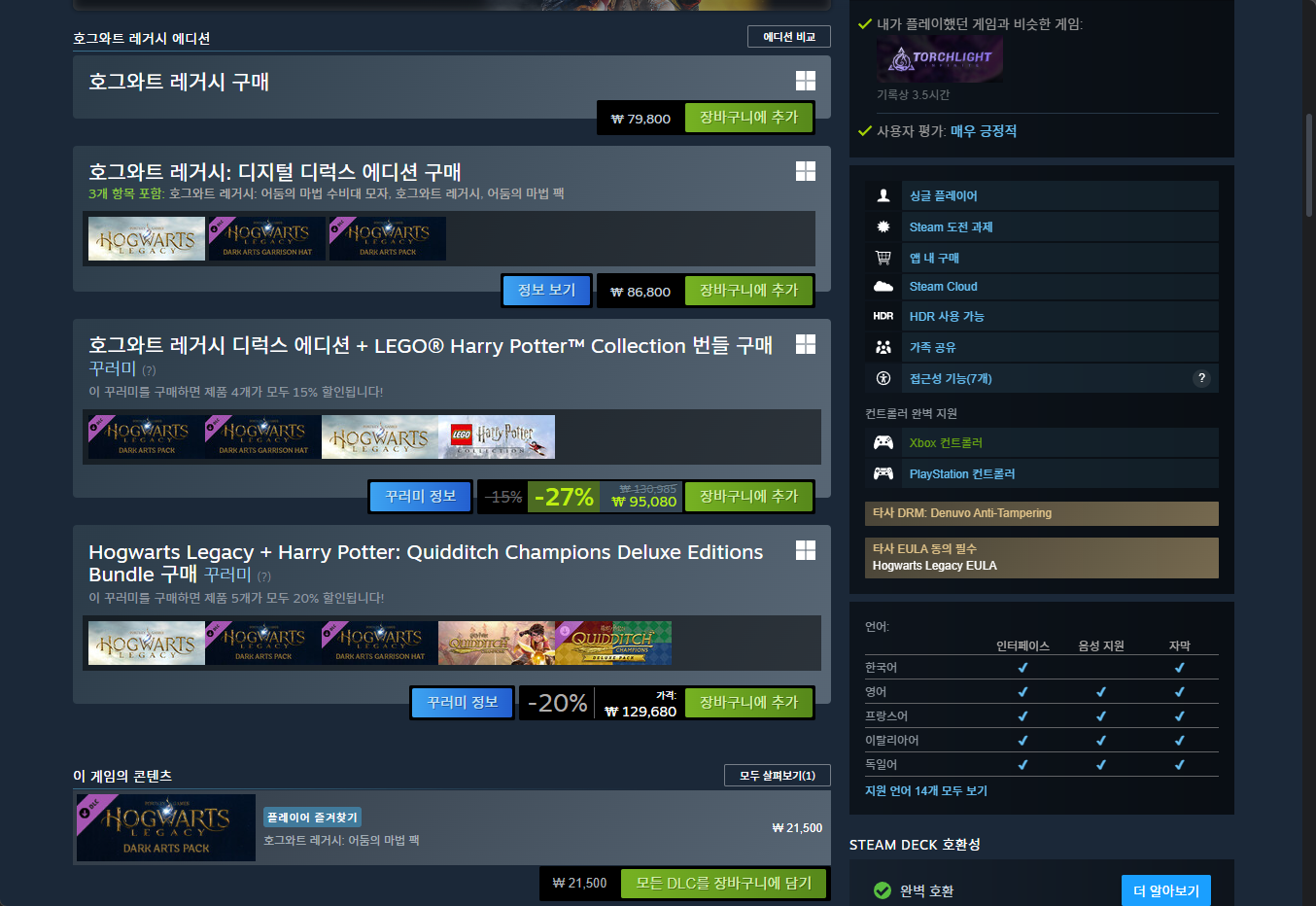 "Hogwarts Legacy (호그와트 레거시)" - Steam 스팀 게임 페이지