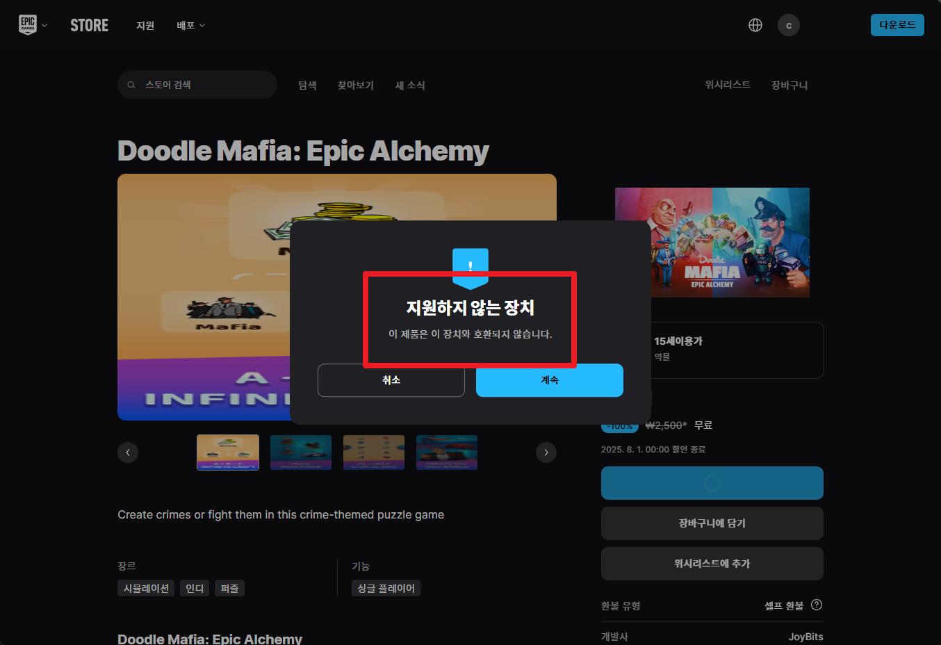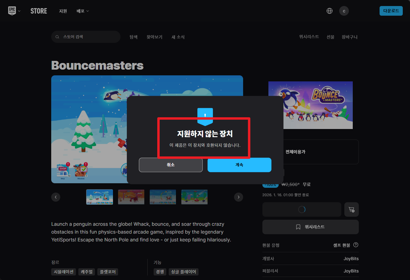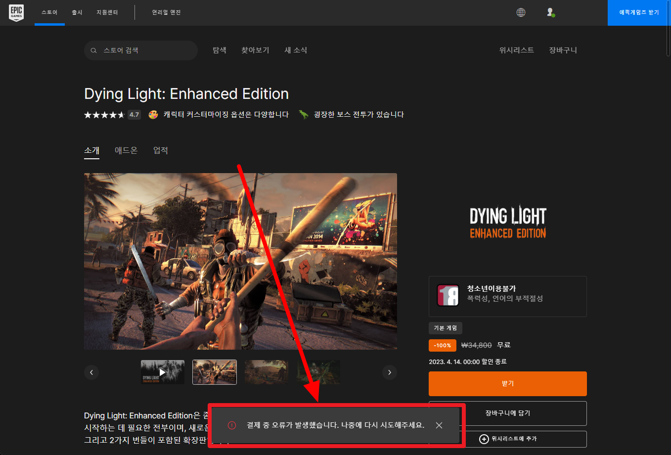 지역락으로 국내스토어에서 게임 구매 및 무료 받기 할 수 없습니다.