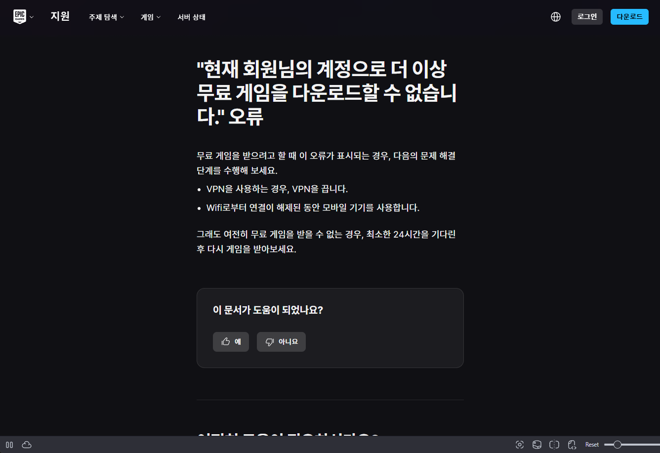 현재 회원님의 계정을 통해 더 이상 무료 게임을 다운로드할 수 없습니다. 24시간 기다린 후에 무료 게임을 다시 받아 보세요.