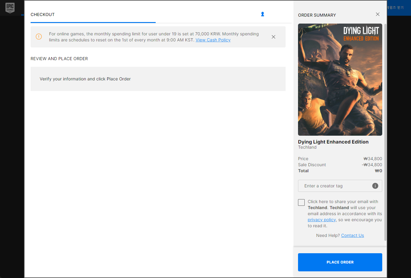 에픽 스토어 처리 오류로 해결되면 정상적인 결제과정 이뤄집니다.