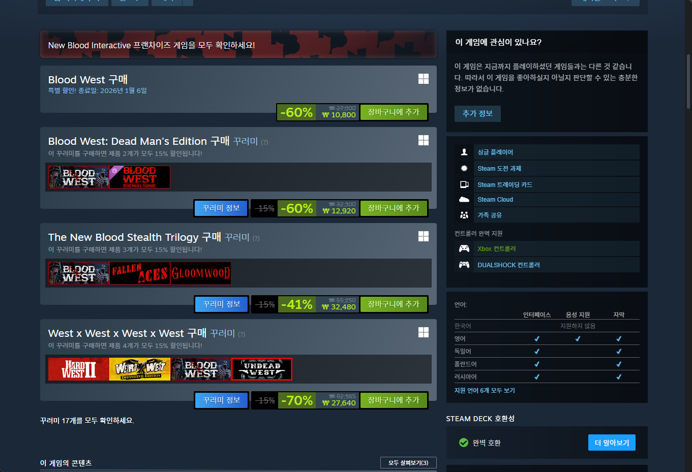 - "Blood West (블러드 웨스트)" - Steam 스팀 게임 페이지