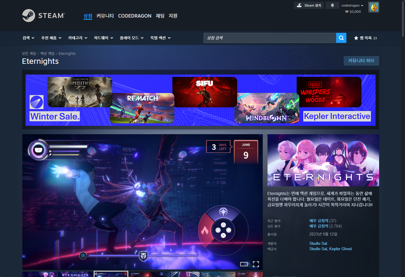 - "Eternights (이터나이츠)" 에픽 무료게임 페이지