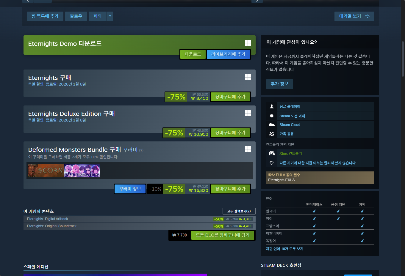 - "Eternights (이터나이츠)" - Steam 스팀 게임 페이지