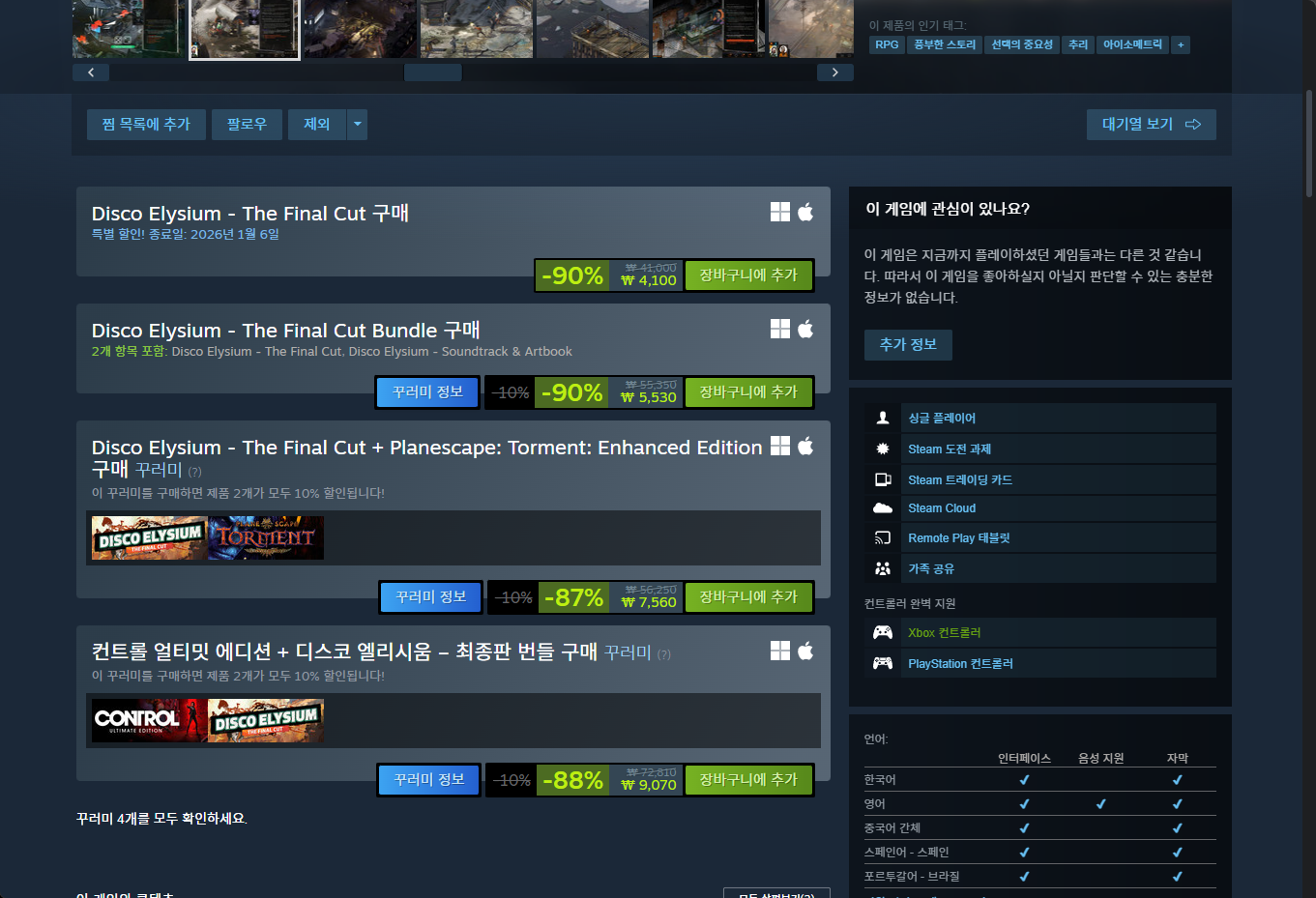 - "Disco Elysium - The Final Cut (디스코 엘리시움 - 더 파이널 컷)" 게임 보유 확인