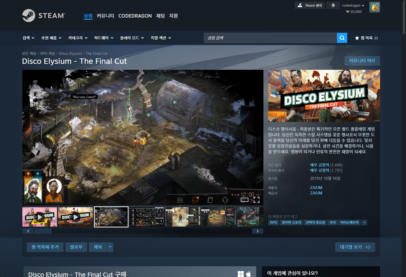 "Disco Elysium - The Final Cut (디스코 엘리시움 - 더 파이널)" - Steam 스팀 게임 페이지