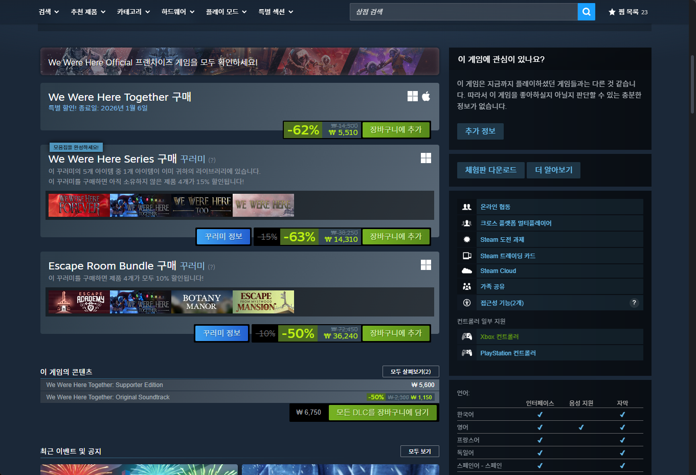 - "We Were Here Together (위 워 히어 투게더)" 게임 보유 확인