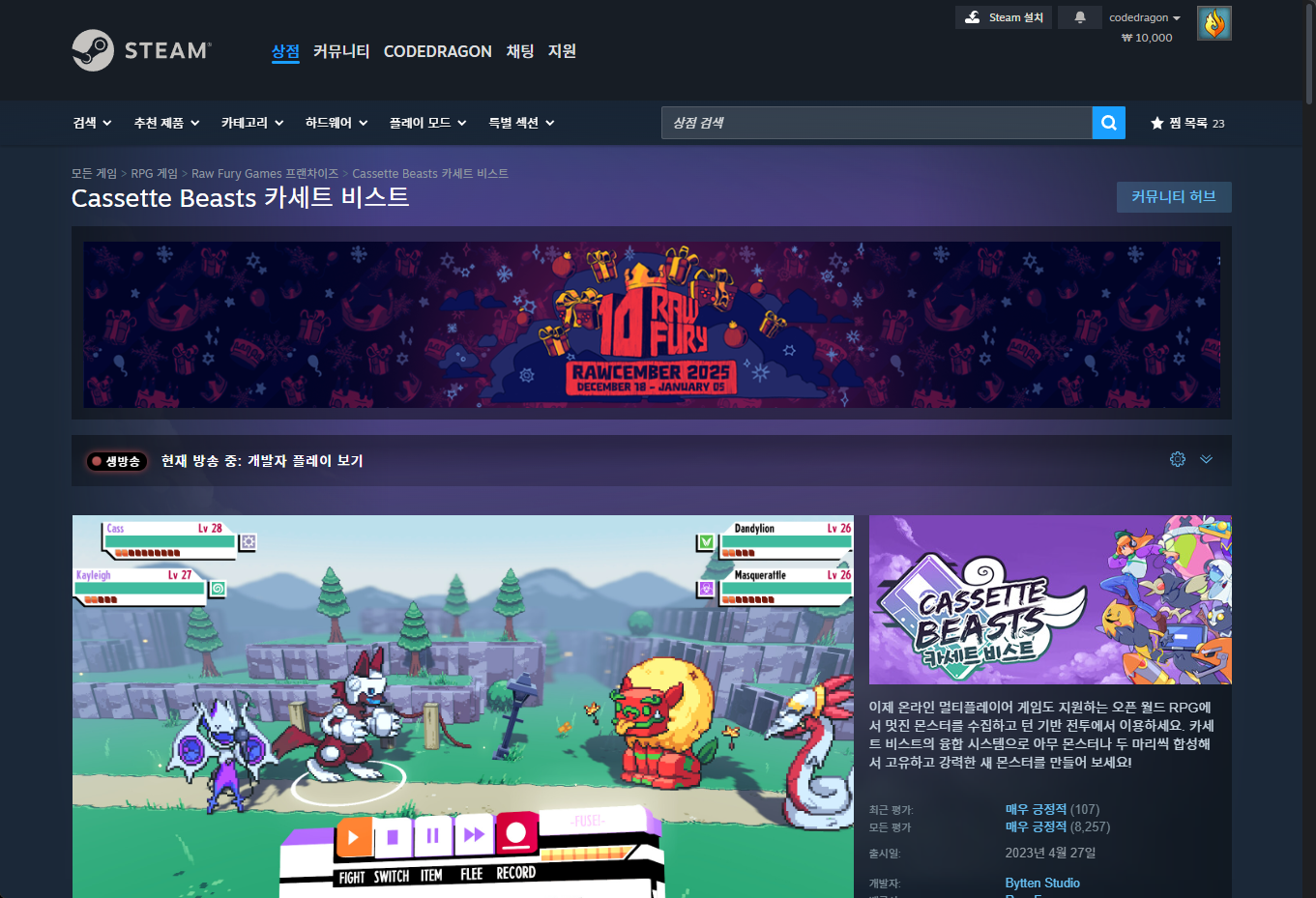 - "Cassette Beasts (카세트 비스트)" - Steam 스팀 게임 페이지