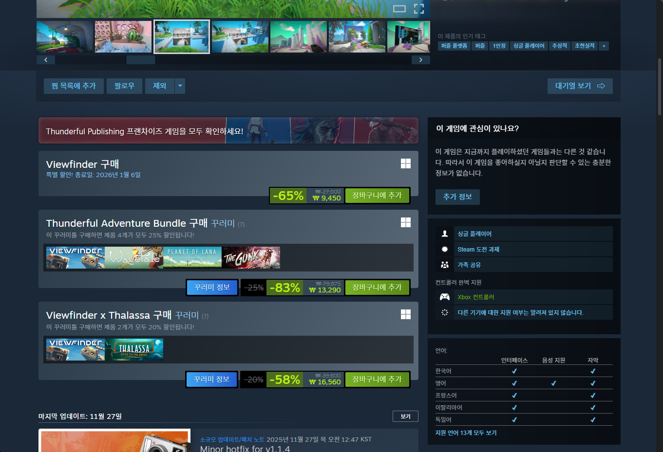 - "Viewfinder (뷰파인더)" 게임 보유 확인