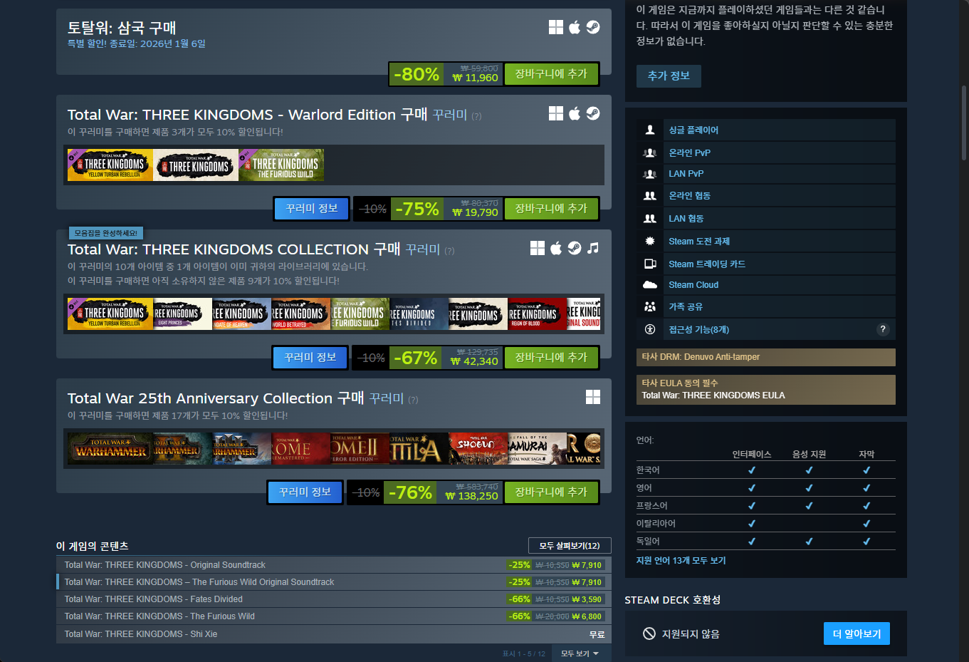 - "Total War: THREE KINGDOMS (토탈 워: 삼국)" 게임 보유 확인