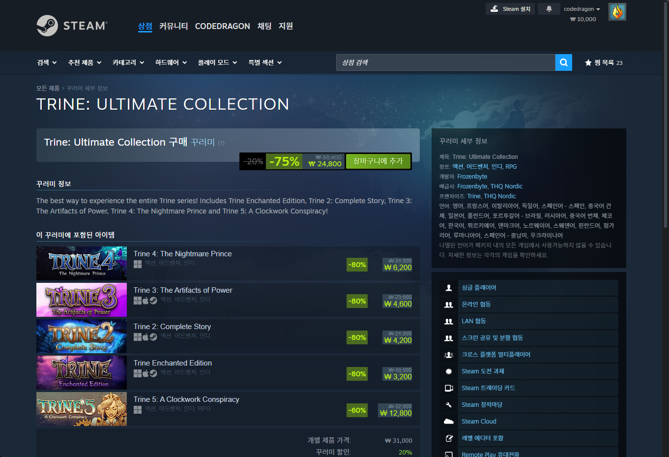 "Trine: Ultimate Collection" - Steam 스팀 게임 페이지