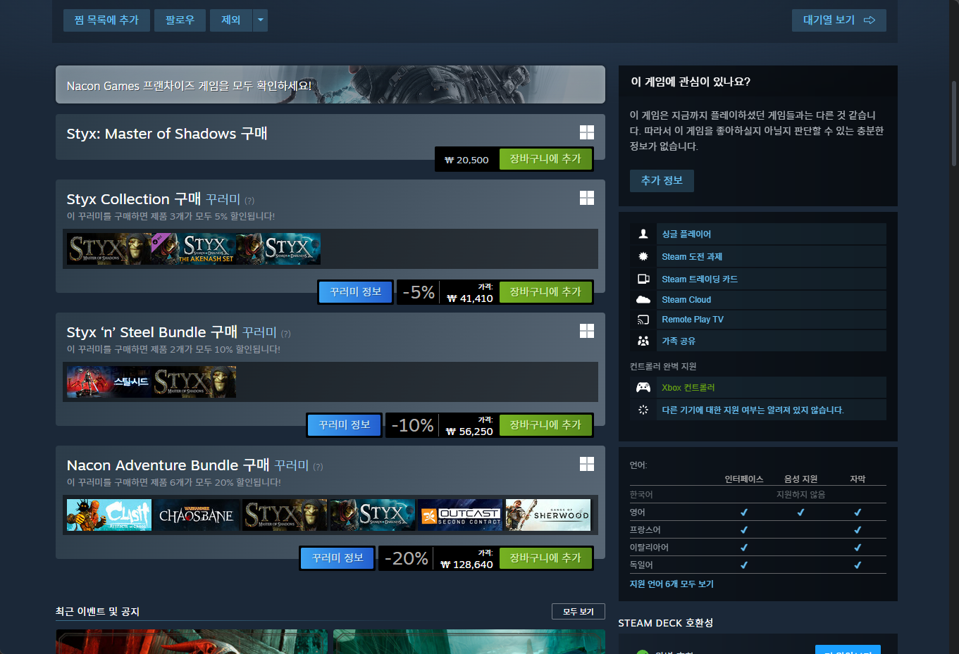 - "Styx: Master of Shadows (스틱스: 마스터 오브 쉐도우)" 게임 보유 확인