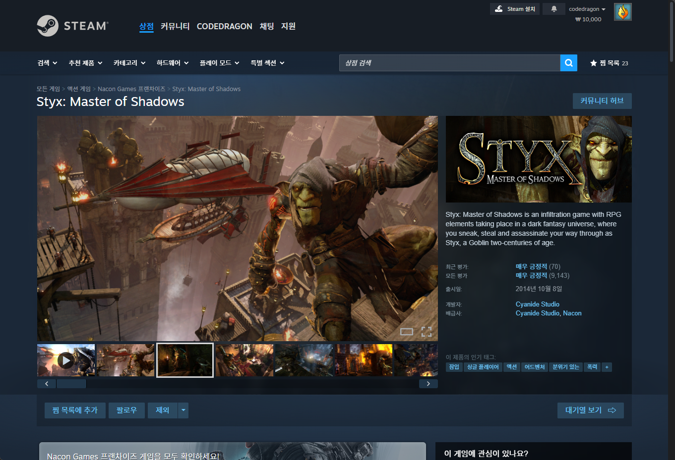 - "Styx: Master of Shadows (스틱스: 마스터 오브 쉐도우)" 한시적 무료게임 구매하기