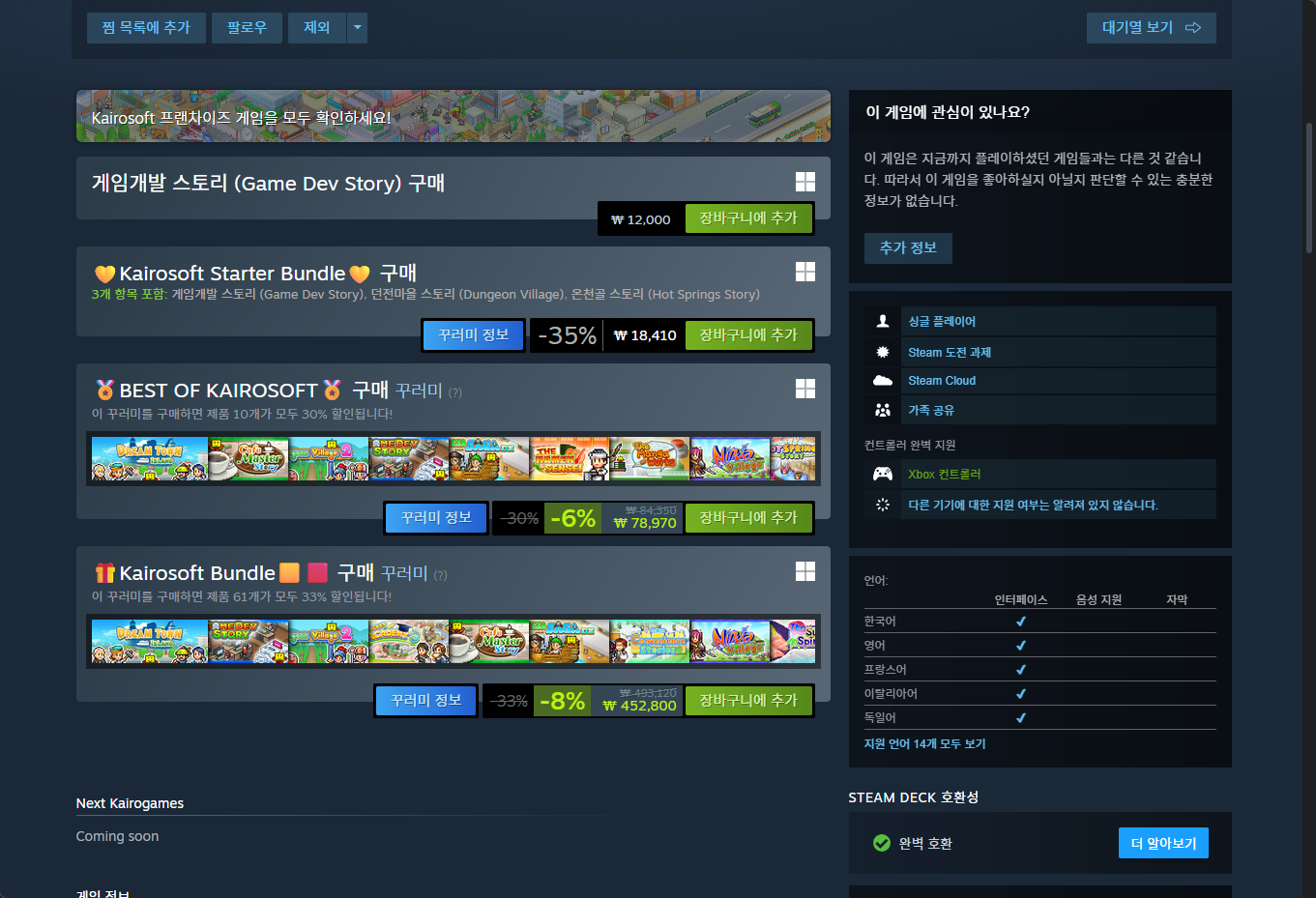 - "게임개발 스토리 (Game Dev Story)" - Steam 스팀 게임 페이지