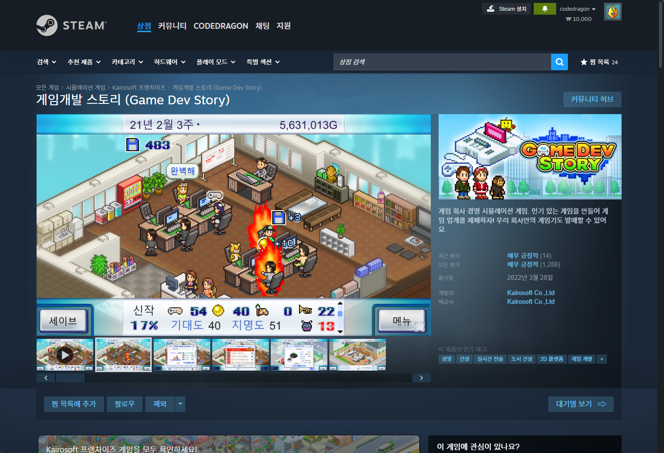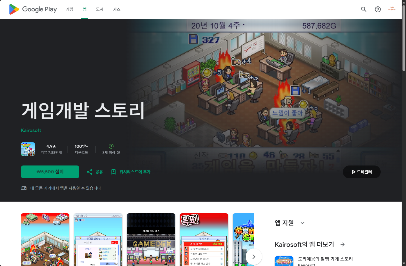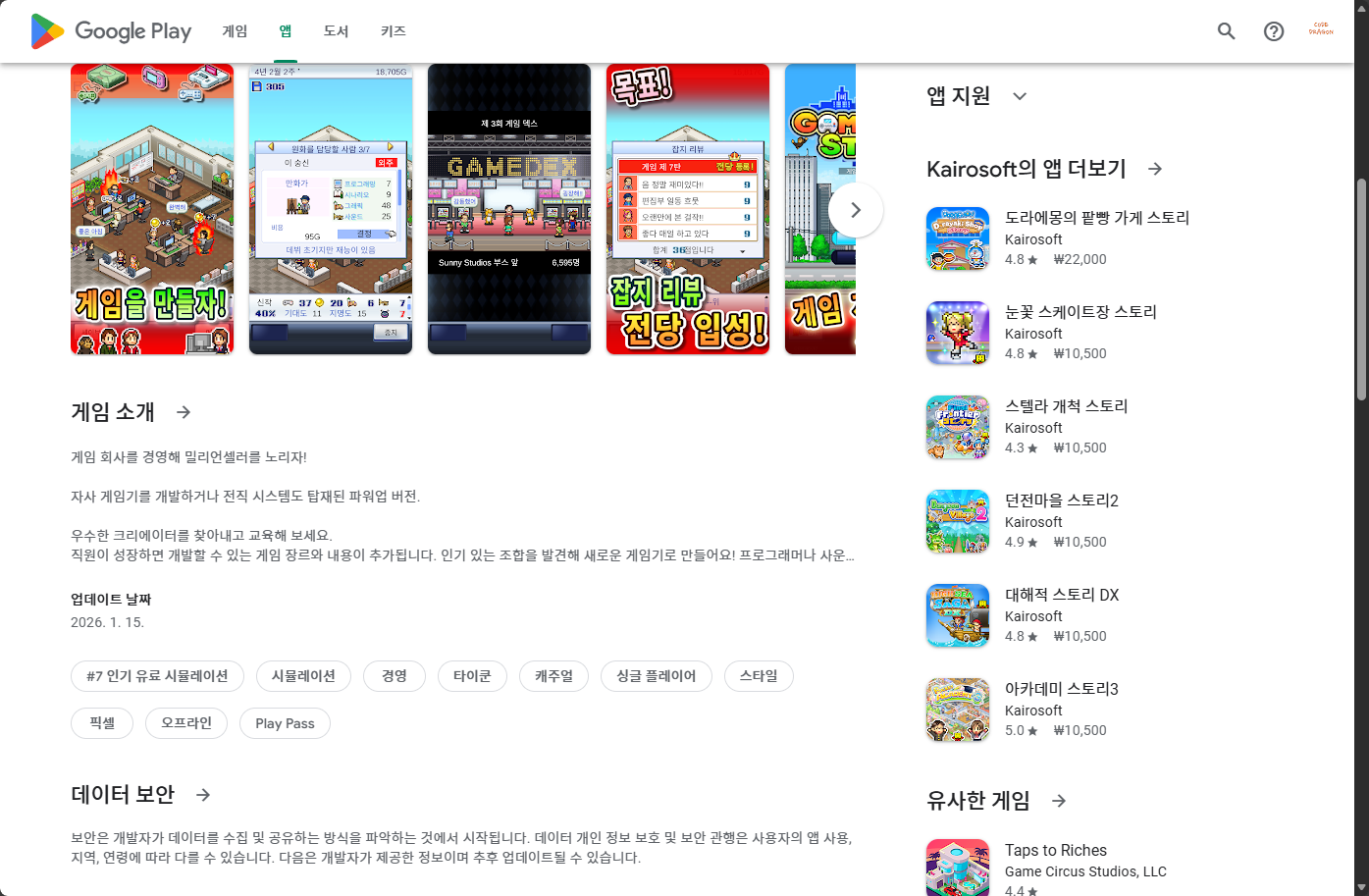 - "Game Dev Story (게임개발 스토리)" 게임 페이지 확인하기