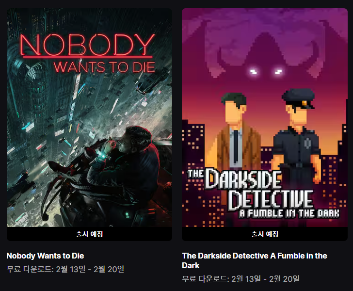 - "Nobody Wants to Die (노바디 원츠 투 다이)" 에픽 무료게임 페이지