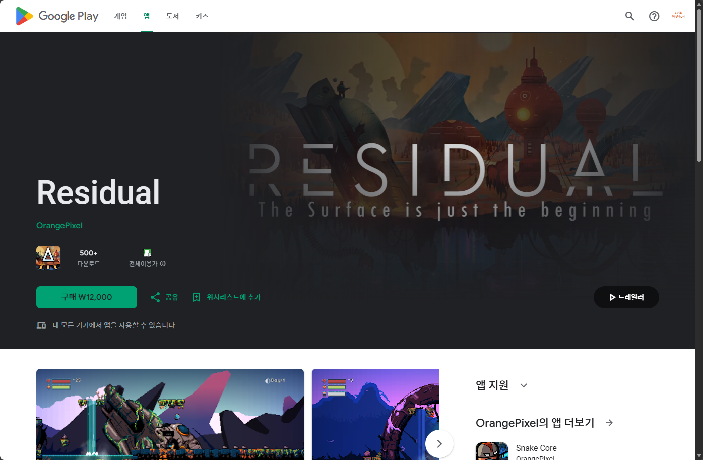 "Residual (리지주얼)" - 구글 플레이 스토어 Google Play Store 게임 페이지