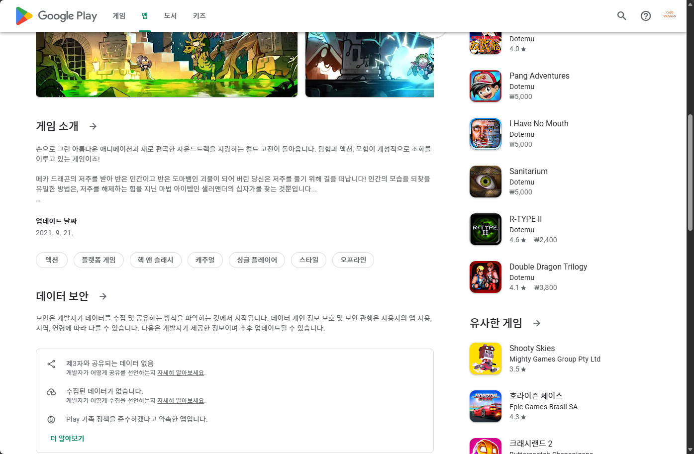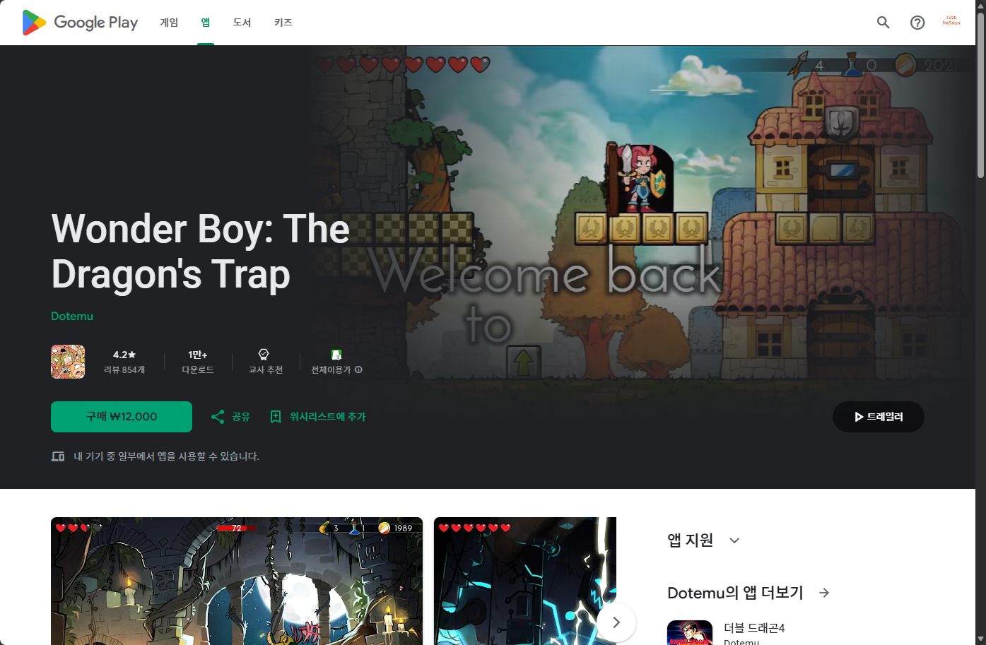 "Wonder Boy: The Dragon's Trap (원더보이: 드래곤즈 트랩)" - 구글 플레이 스토어 Google Play Store 게임 페이지