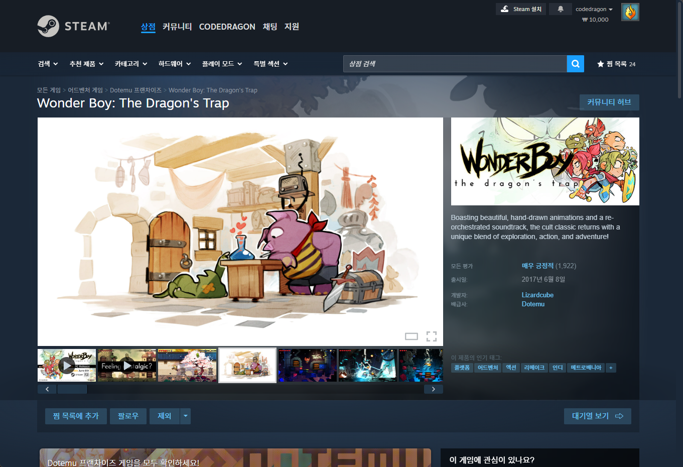 "Wonder Boy: The Dragon's Trap (원더보이: 드래곤즈 트랩)" - Steam 스팀 게임 페이지