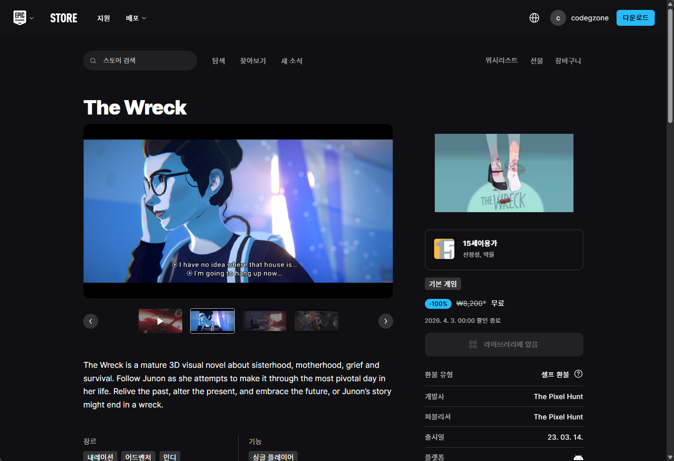 - "The Wreck (더 렉)" - Android, iOS 에픽 EGS 장바구니